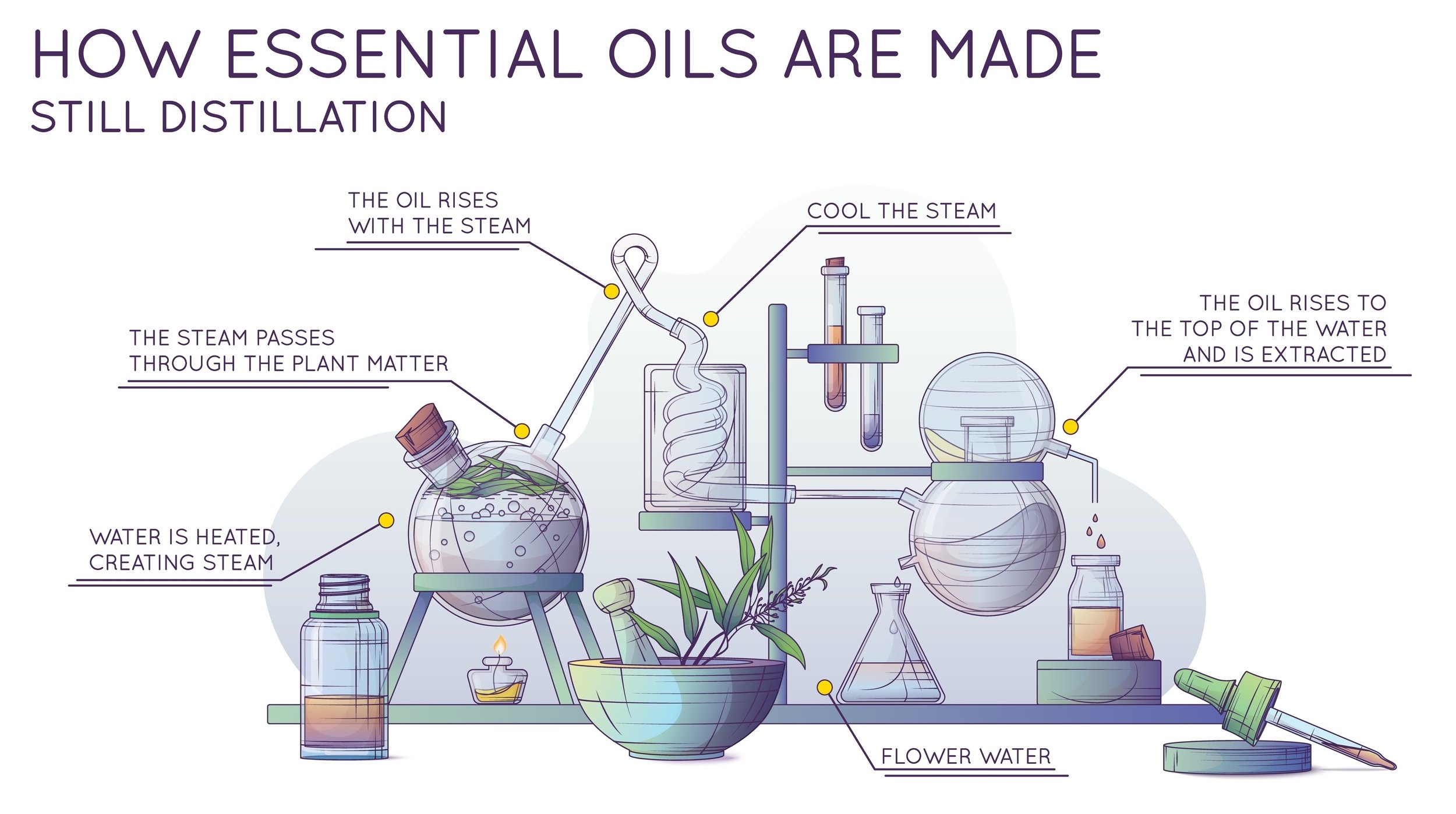 Uçucu yağlar (esansiyel yağlar), bitkilerin çiçek, yaprak, meyve kabuğu veya köklerinden buhar distilasyonu veya soğuk sıkım yöntemleriyle elde edilen yüksek konsantrasyonlu özlerdir. Bir damla uçucu yağ üretmek için bazen kilolarca bitki gerekebilir. (1 kg saf gül yağı elde etmek için yaklaşık 4 ton gül yaprağı kullanılır.)